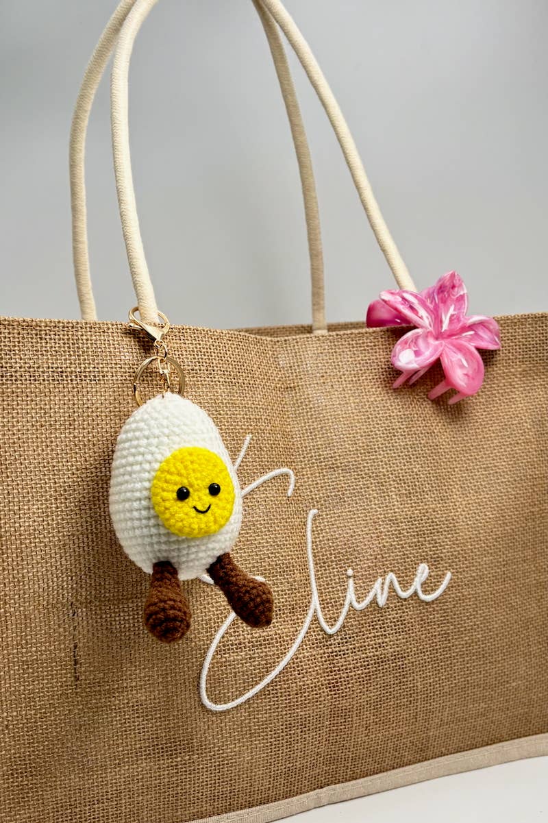 Dieser gehäkelte Schlüsselanhänger vereint handwerklichen Charme und Alltagstauglichkeit. Sorgfältig gefertigt, besticht er durch sein weiches und originelles Aussehen, das Ihren Schlüsseln oder Ihrer Tasche eine warme und einzigartige Note verleiht. Sowohl robust als auch modisch, wird er zum perfekten Accessoire, um Ihre Essentials stilvoll zu personalisieren.
