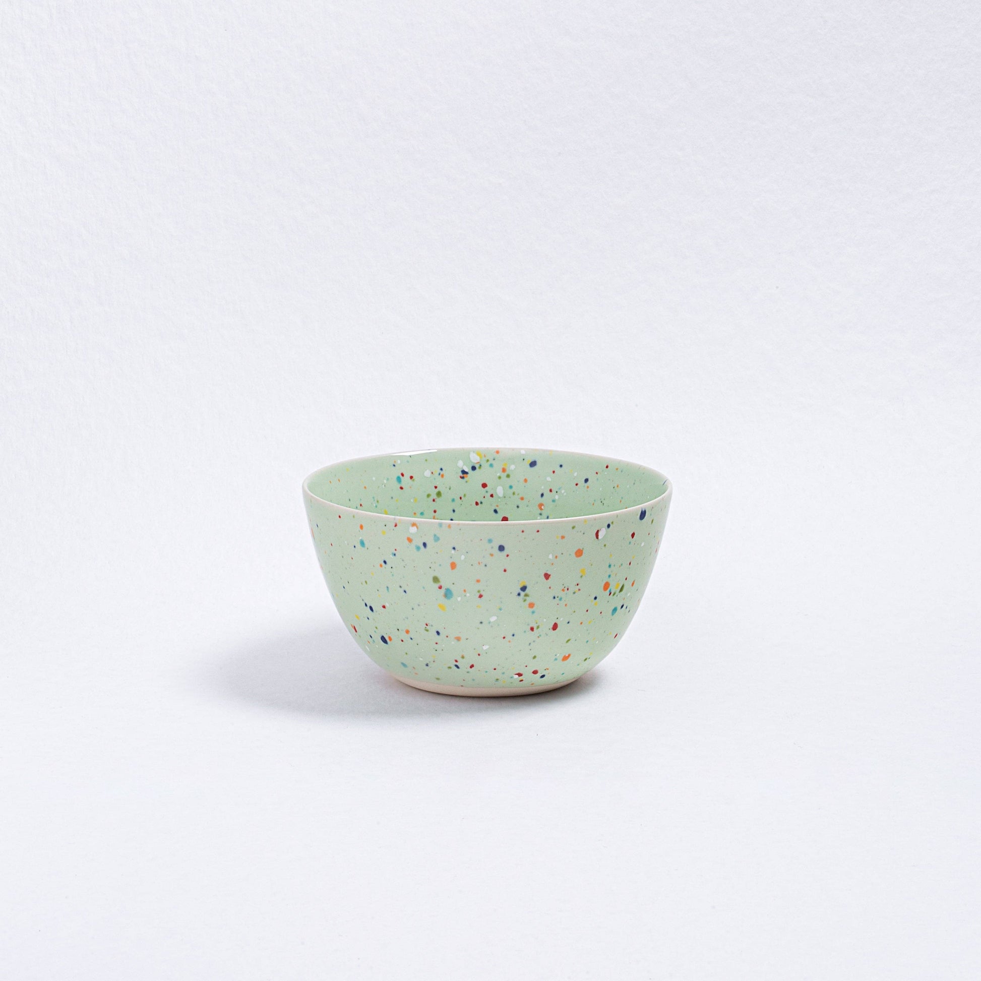 Unsere Party-Kollektion verfügt über eine spezielle Art von Glasur, die Bereiche aufweisen kann, in denen sich Sprenkel aufgrund der reaktiven Natur des Glases während der Verarbeitung verteilen.