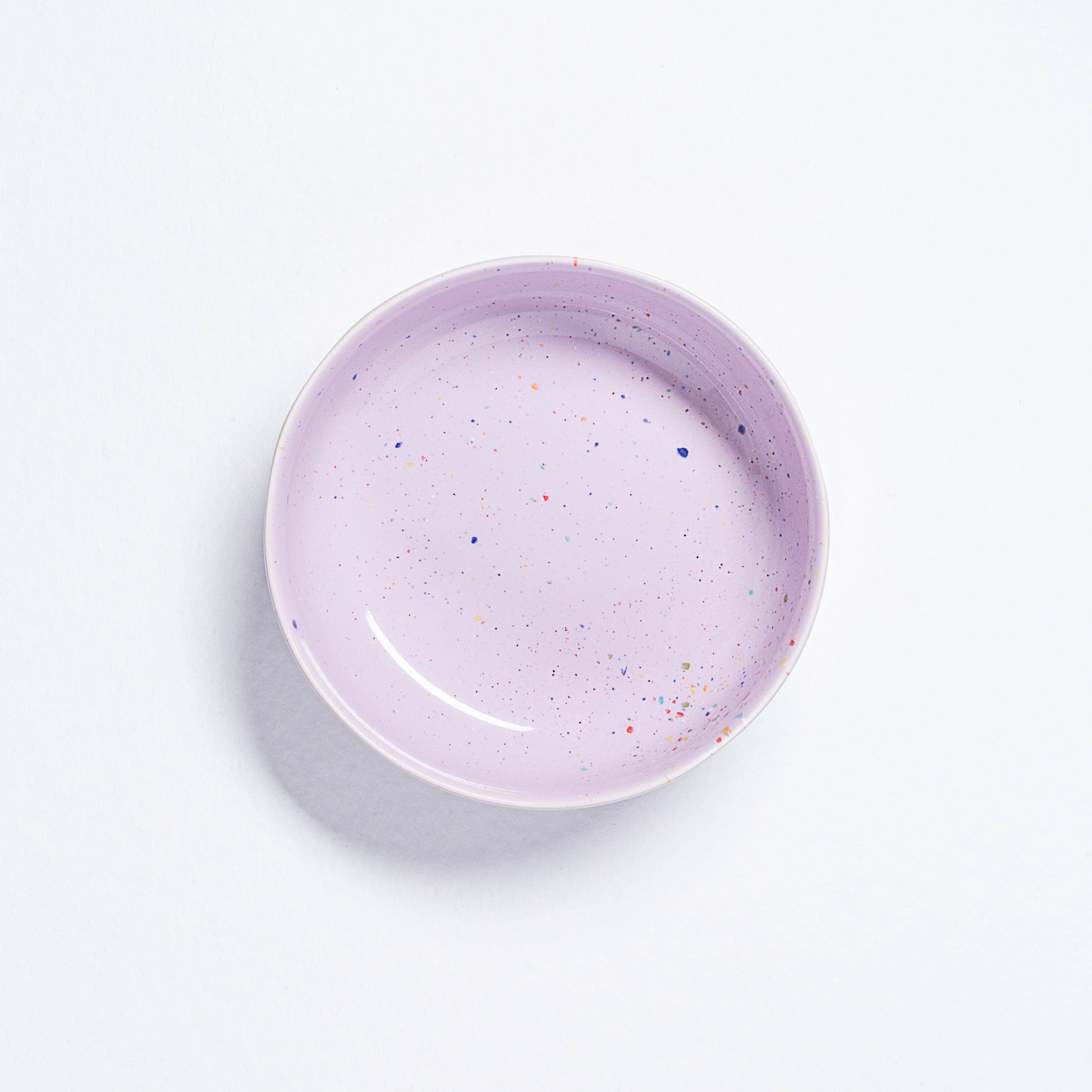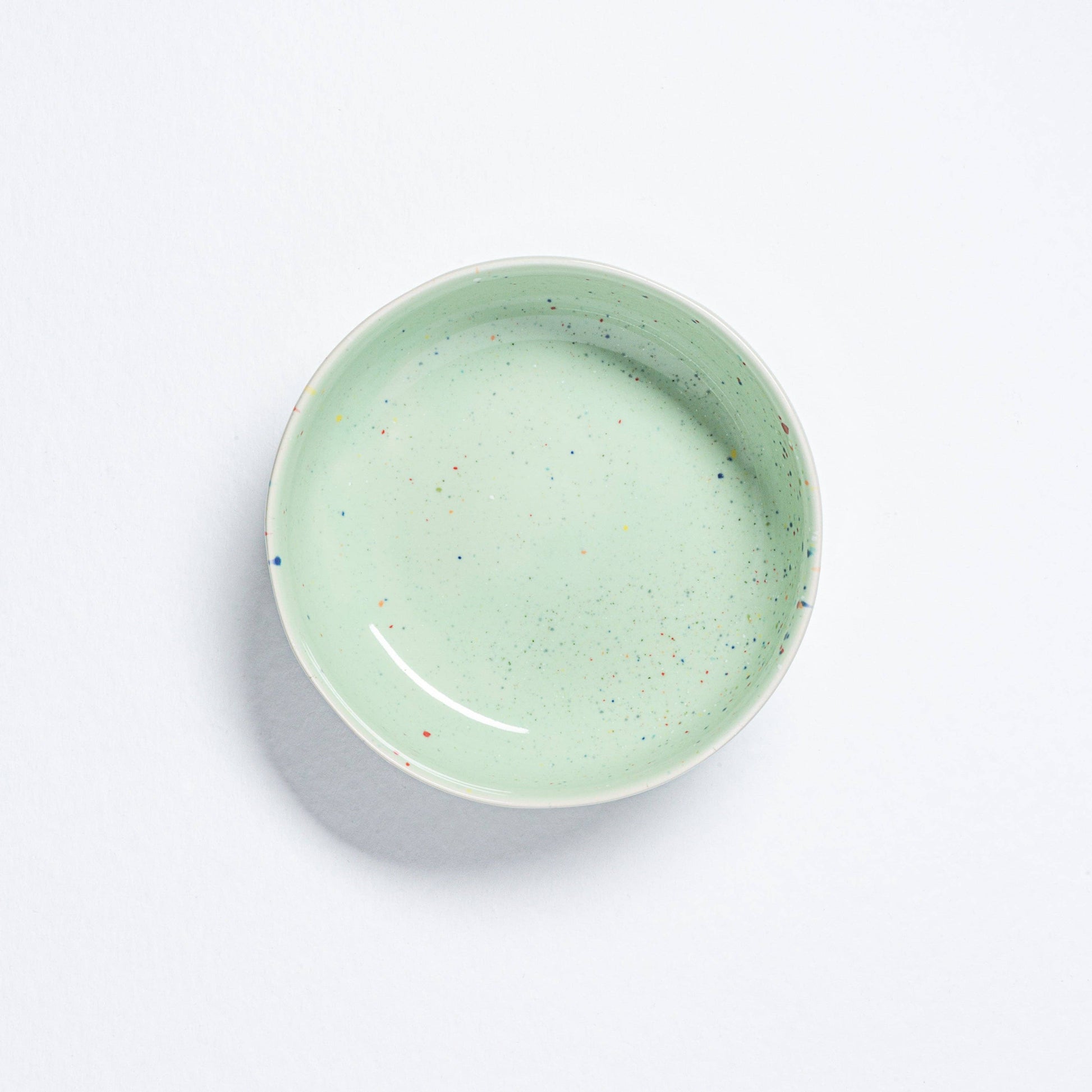Unsere Party-Kollektion verfügt über eine spezielle Art von Glasur, die Bereiche aufweisen kann, in denen Sprenkel aufgrund der reaktiven Natur des Glases während der Verarbeitung diffus werden. Wir finden diese einzigartigen, unvorhersehbaren Variationen als den schönsten Aspekt der Glasur.