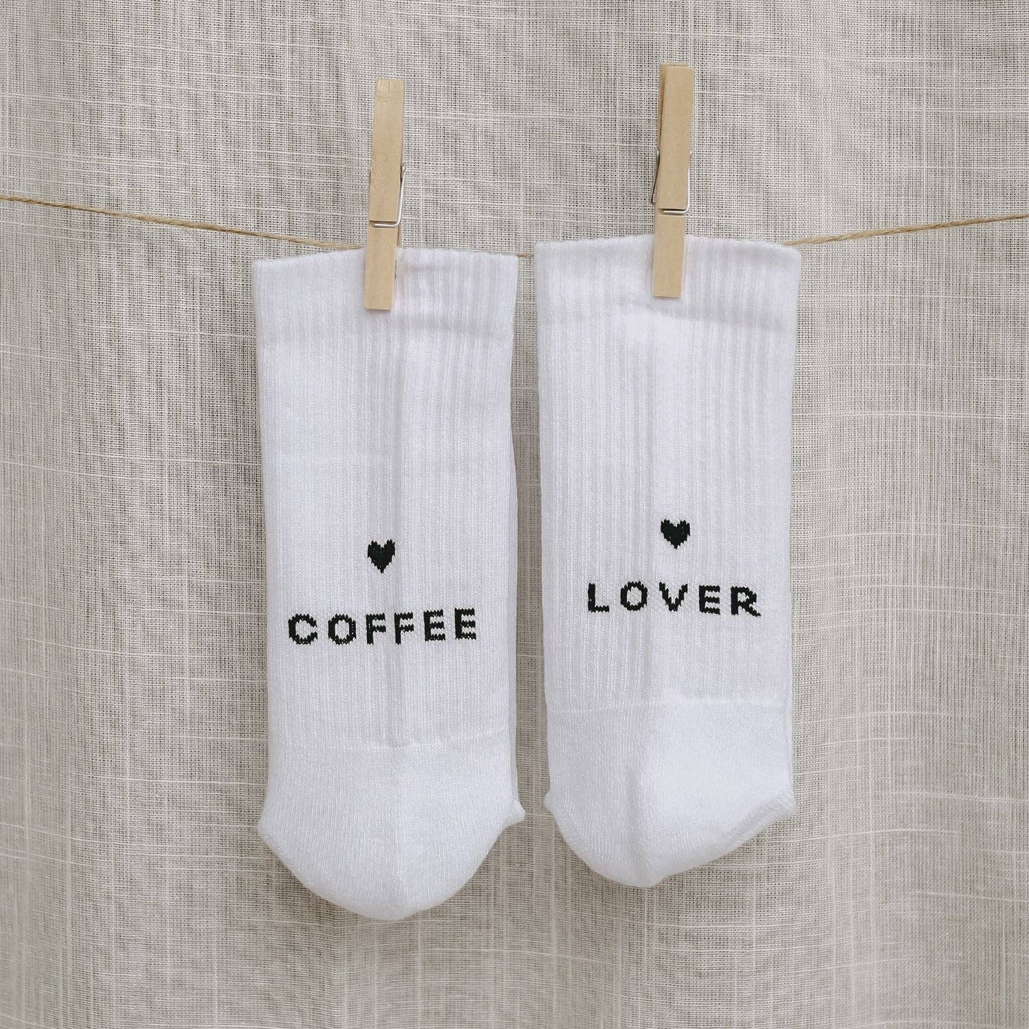 Kaffeeliebhaber aufgepasst - unsere Socken Coffee Lover sind genau das Richtige für euch. Der perfekte Hingucker für dein Outfit. Unsere weißen und sehr weichen Socken haben an den Fersen unseren allzeit Lieblingsspruch "Coffee Lover" sowie jeweils ein kleines Herz eingewebt. So wird der Spruch hinten über dem Sneaker toll in Szene gesetzt. Ob zu deinem sportlichen Kleid, deiner Lieblingsjeans oder dem gemütlichen Outfit für zu Hause. Mit einem Kaffee in der Hand und den Socken an den Füßen, ist gute Laune vorprogrammiert. Unsere Socken Coffee Lover sind auch das perfekte Geschenk für jeden, der Kaffee genau so gerne trinkt wie wir.
