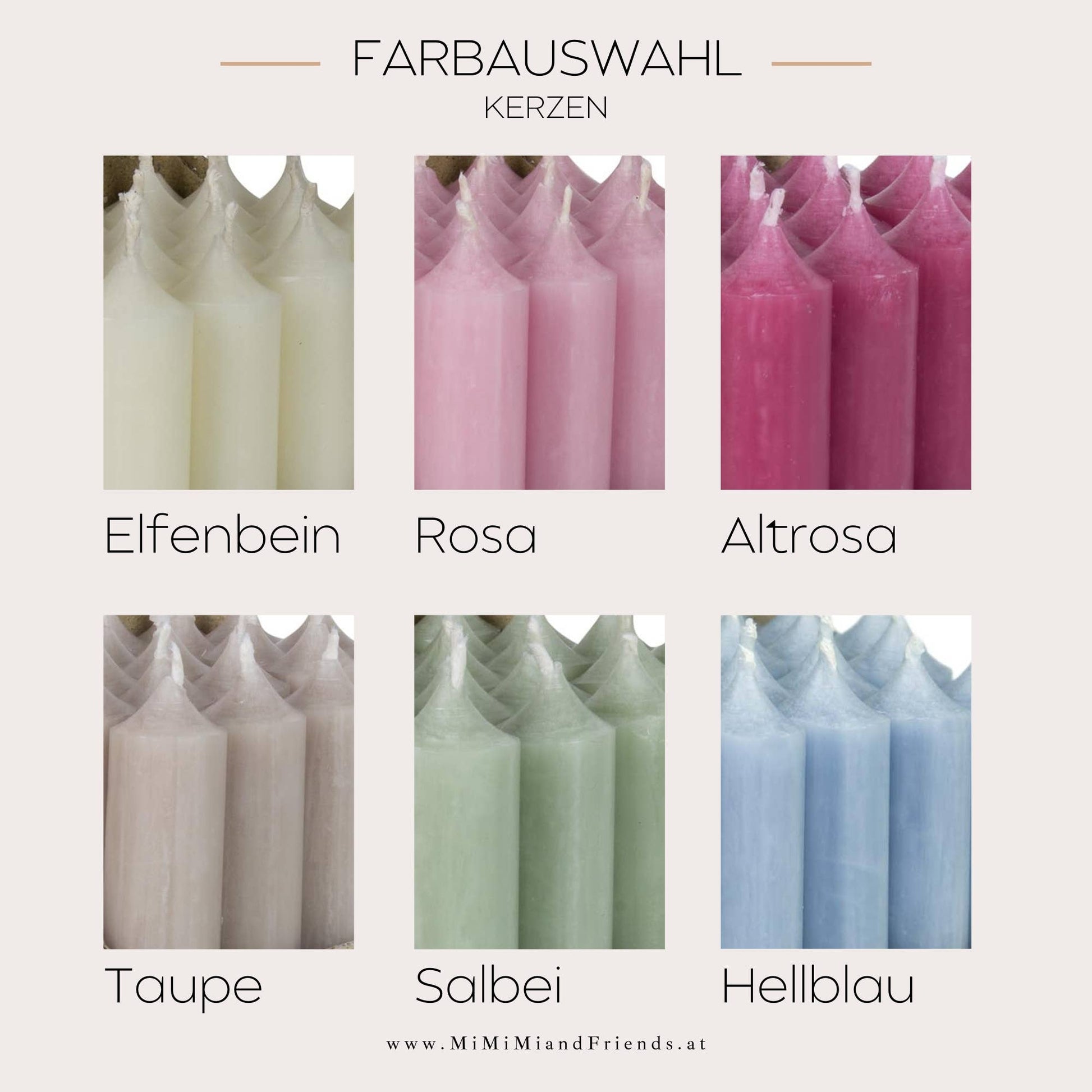 VPE: 9 Stück - erhältlich in 6 Farben oder in einer gemischten bunten Box (hier ist die Kerze in der Farbe taupe, salbei und elfenbein doppelt) oder der naturbox in taupe, salbei & elfenbein - bei bestimmten Mengen jeder Farbe in den Mix Boxen schreib mir bitte gleich nach deiner getätigten Bestellung eine Nachricht - gerne gehe ich auf deine Wünsche ein ♥