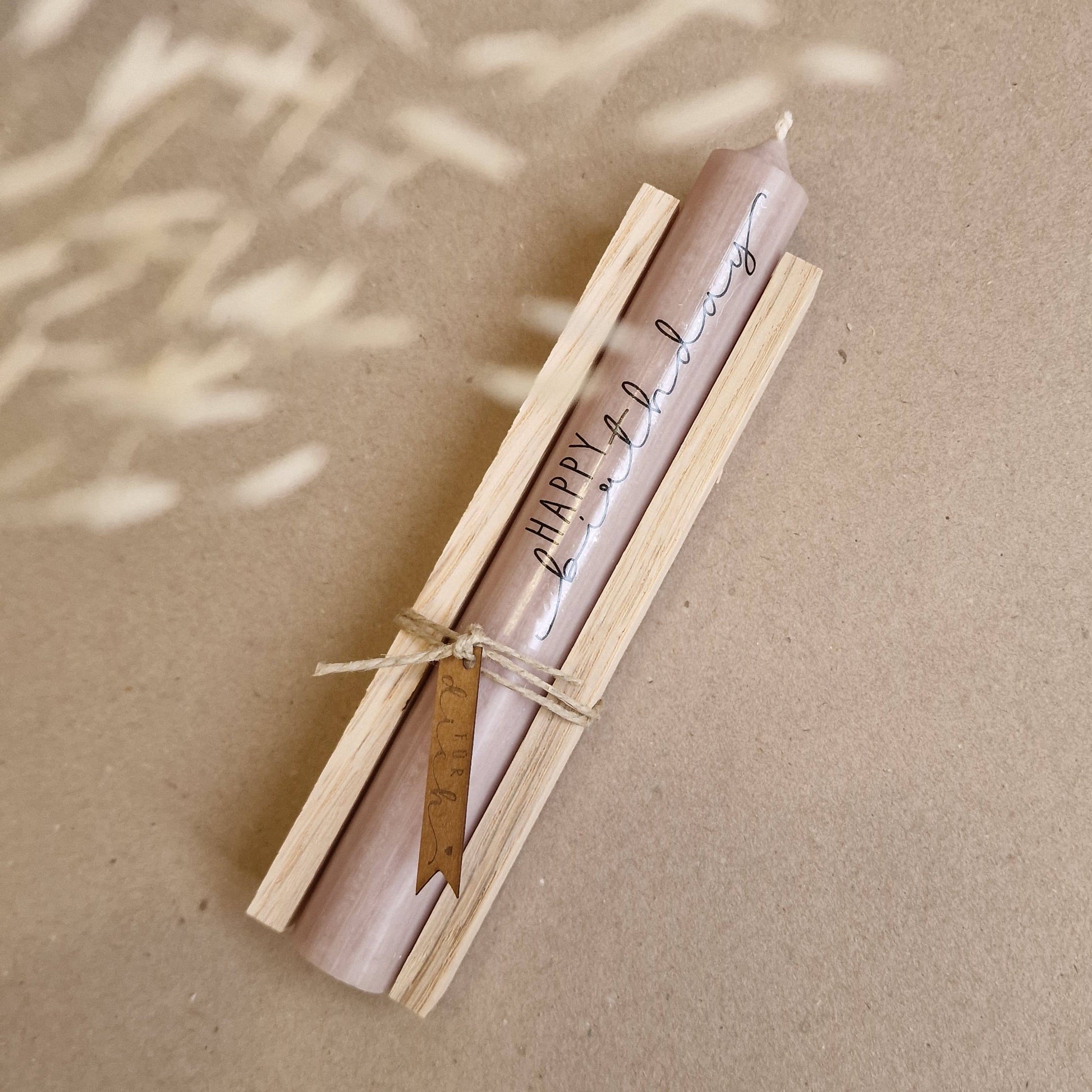 Die Kerze mit einer Länge von ca. 18 cm kommt liebevoll verpackt und kann so gleich verschenkt werden.