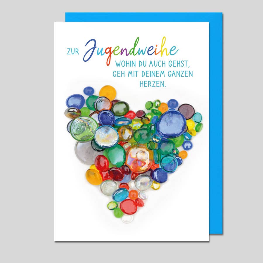 Grußkarte "Zur Jugendweihe - Wohin Du auch gehst, geh mit Deinem ganzen Herzen" Kartenformat 12 x 17 cm, Lieferung mit farblich passendem Briefumschlag.