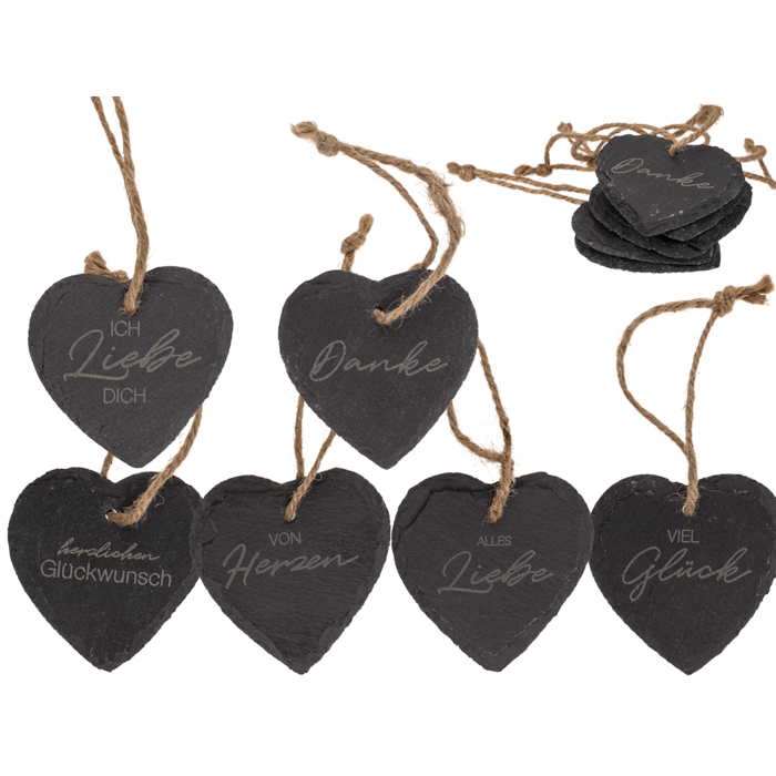 Geschenkanhänger aus Schiefer, ca. 7 x 7 cm, 24 Stk. pro Holzkiste - Schieferanhänger