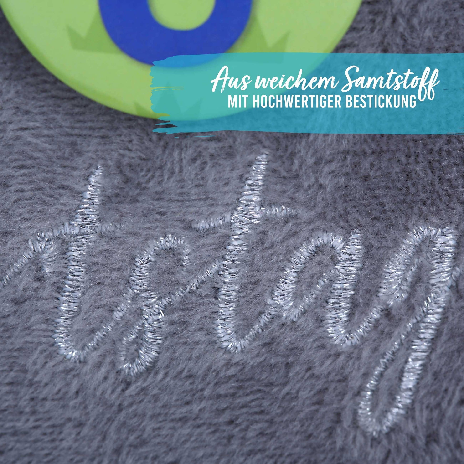 Papierdrachen Geburtstagskrone Samt mit Zahlen - Grau - für den Kindergeburtstag - Krone aus Samtstoff mit Button Zahlen von 1-8 | Party Deko Hut für Jungen & Mädchen - Set 6