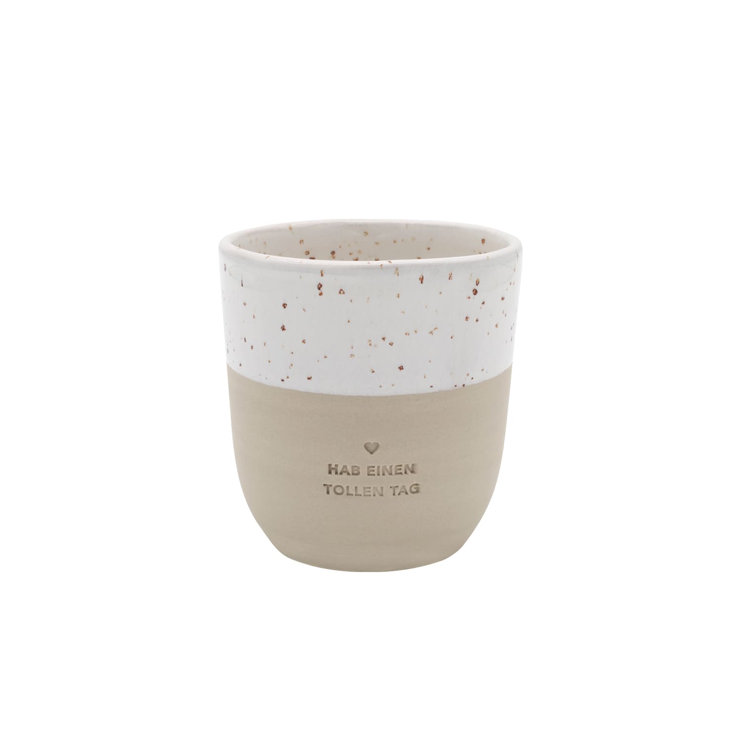 Eine kleine Töpferei aus Portugal produziert diese wundervollen Becher in liebevoller Handarbeit & ist ein großartiger neuer Begleiter auf unserem kreativen Weg. Die Becher lassen die Herzen höher schlagen, für alle die die Individualität von Ton & Glasur lieben, denn jeder einzelne Becher hat seinen ganz eigenen Touch. Da alle Becher mit der Hand gefertigt, gebrannt, geprägt, abgeschliffen, geglazt & nochmal gebrannt werden, gibt es Unterschiede in der Drucktiefe, in der Höhe sowie der Geradlinigkeit. Das minimalistische Design und die natürlichen Farbnuancen werden von einer wunderschönen Blindprägung “Hab einen tollen Tag” abgerundet.